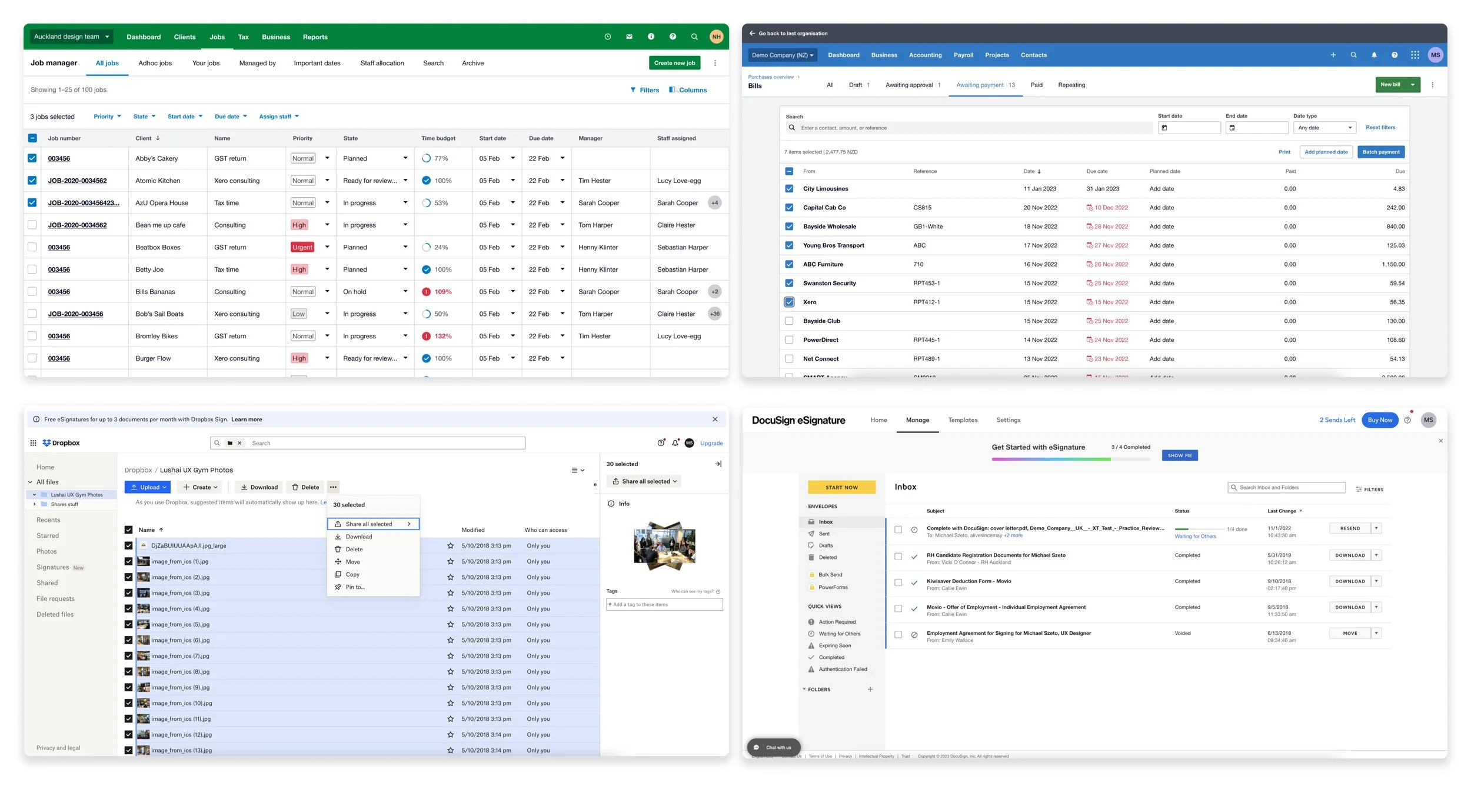 I reviewed different examples of bulk action patterns from both Xero and external products like Dropbox and Docusign and summarized key trends in a S.W.O.T analysis write up. Doing a competitor analysis helped create a unified agreement on how our experience would work between product and design.