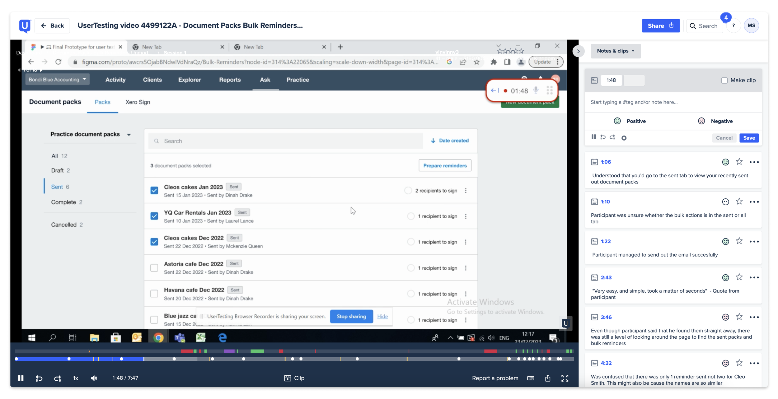 As our main focus was on validating usability, we decided to go with unmoderated testing to get a fresh perspective from accountants outside of Xero which also allowed us to get a larger number of participants to provide feedback.