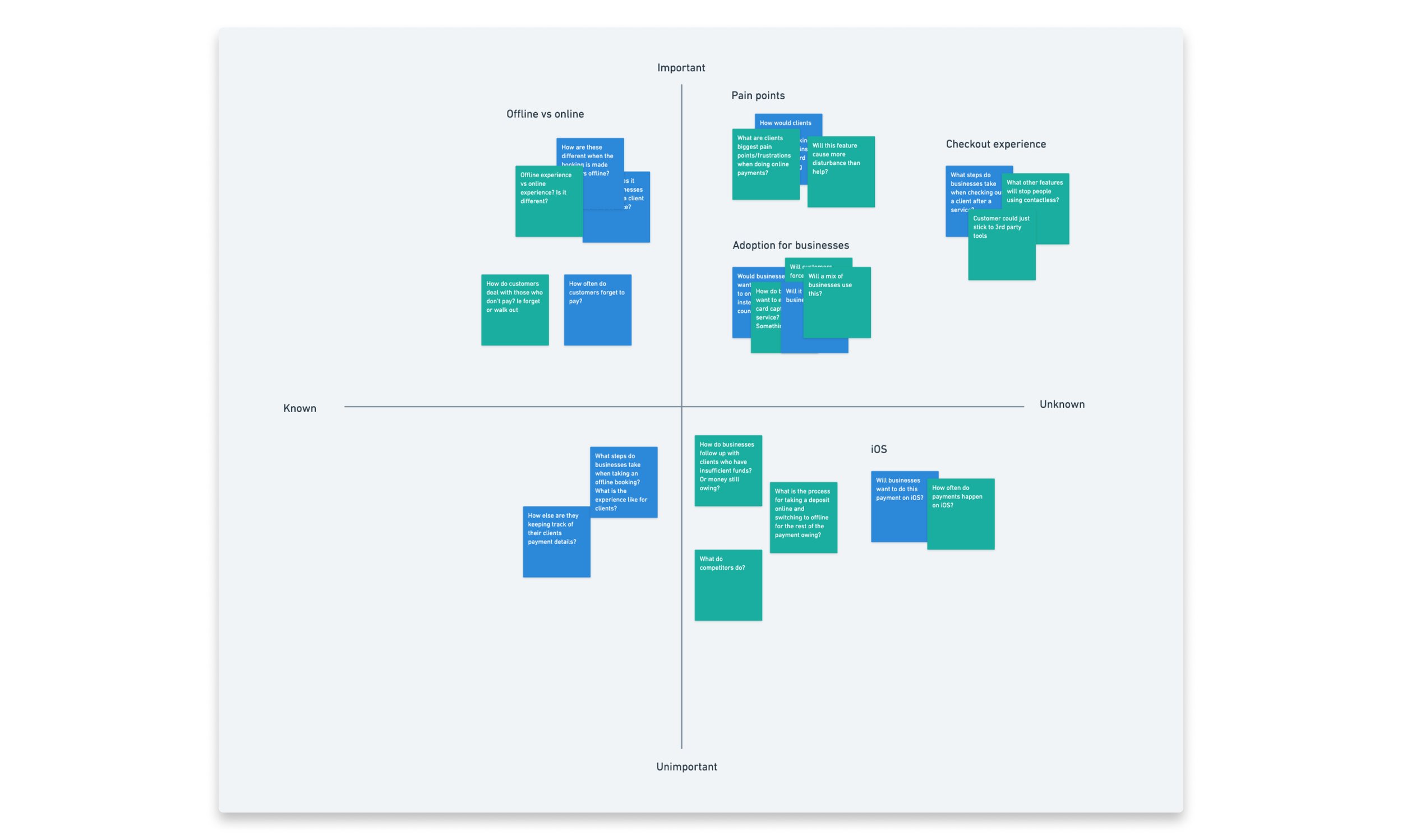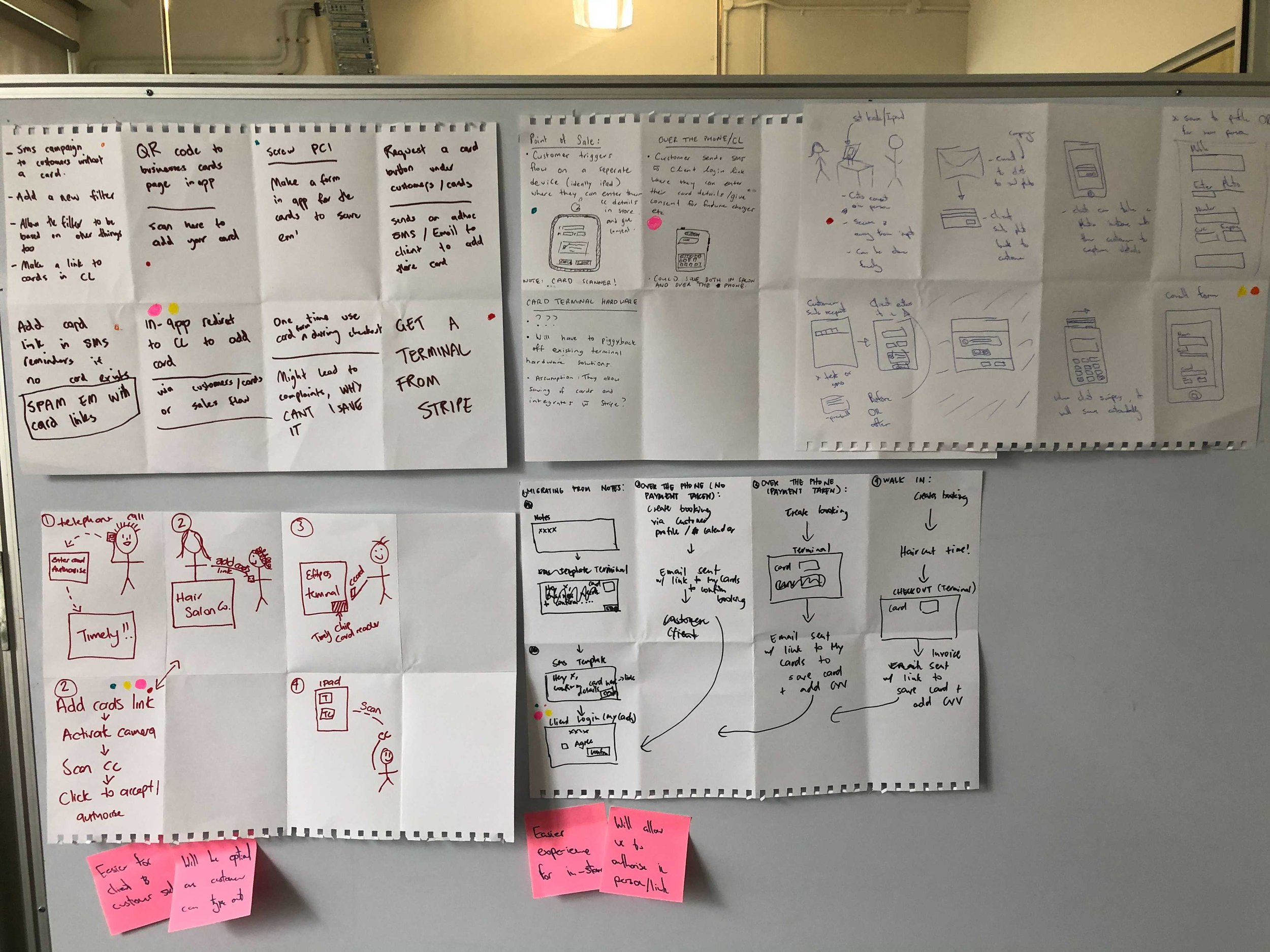 I conducted both on-site customer visits and online interviews with salons to validate our assumptions gathered in our assumption map ahead of our research and also identify other pain points we weren’t aware of in the payment process. I also built out our research plan and script for the sessions.